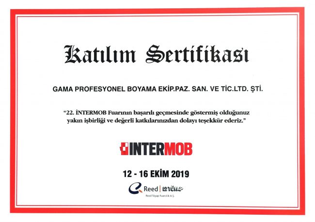 İNTERMOB 2019 / İSTANBUL GAMA PROFESYONEL olarak 12-16 Ekim 2019 tarihleri arasında düzenlenecek olan İNTERMOB 2019 / İSTANBUL fuarına katılacak olan, Başta Avrupa olmak üzere dünyanın her yerinden üreticiler ve tüccarlar bir araya gelecek. Sizleri standımızda görmekten mutluluk duyacağız. Güzel bir fuar dileriz.