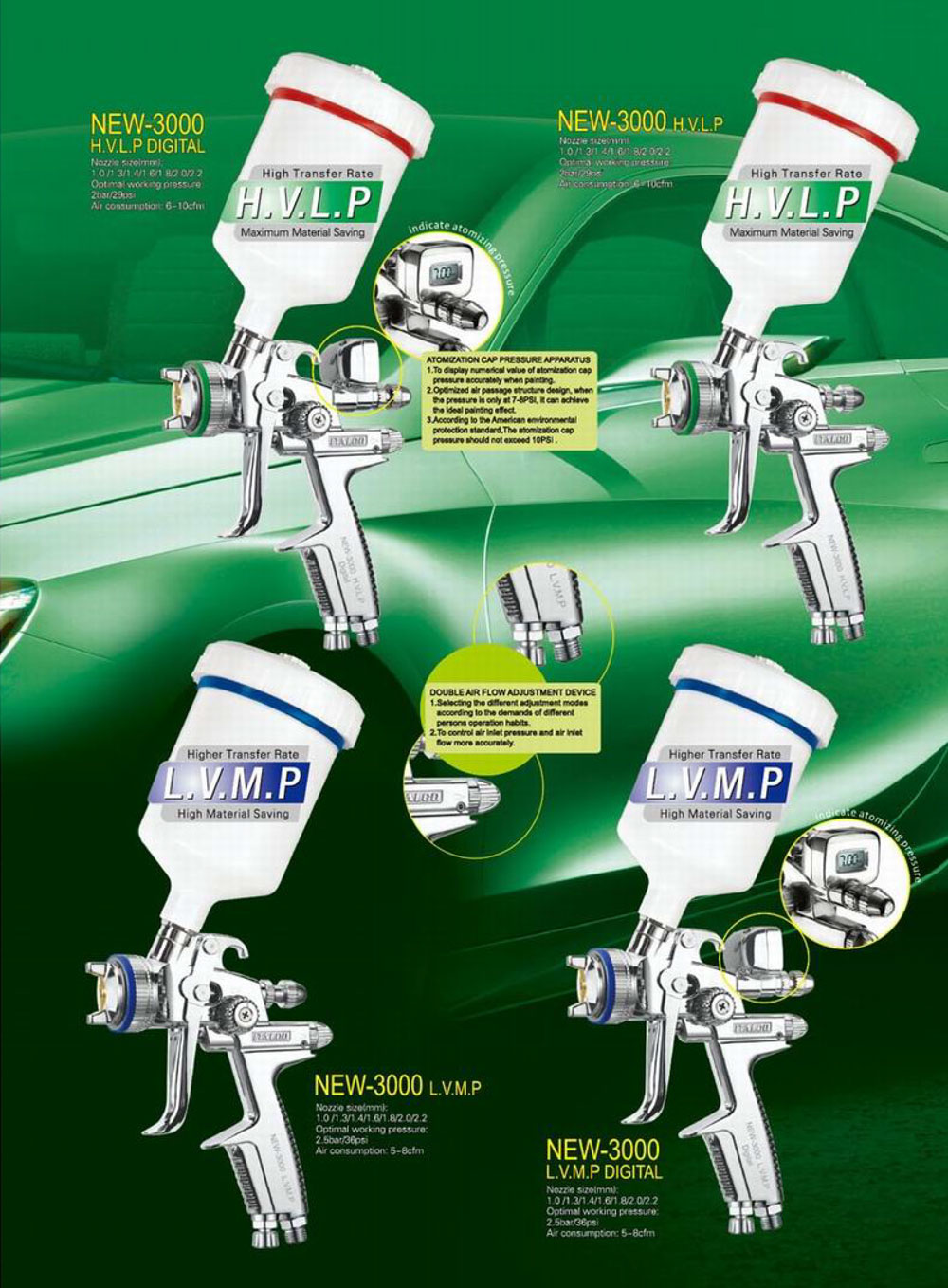 “Super-Eco” ITALCO H-3000 B HVLP, düşük basınç teknolojisi sayesinde yüksek oranda transfer verimliliği yakalamaktadır.