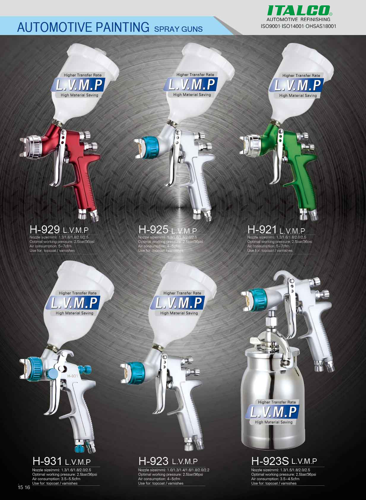 Yeni ITALCO H-929 L.V.M.P. standartları belirliyor. En son teknoloji ile üretilen bu boya tabancası, yoğun, uygulamalı testlerden geçirilmesinin yanı sıra ITALCO’ ya özgü hassasiyet tutkusuyla en uygun şekle getirilmiştir. Sonuç: rakipsize, yumuşacık bir püskürtme şekli, kusursuz ergonomi ve mükemmel boyama yüzeyleri için üstün atomizasyon